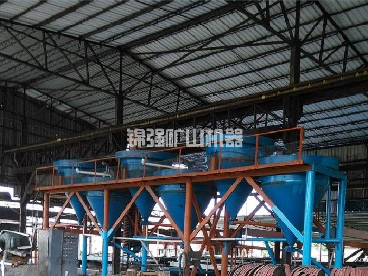 在液面中心設置給礦圓筒,圓筒底緣沒入液面以下若干深度。礦漿沿切線方向向給入中心圓筒,經緩沖后由底緣流出。流出的礦漿呈放射狀向周邊溢流堰流出。在這一過程中,沉降速度大于液流上升分速度的粗顆粒將沉在槽內,并經底部沉砂排出。細顆粒隨表層礦漿進到溢流槽內。分泥斗給礦粒度一般小于2mm。分級粒度為75或更細些。