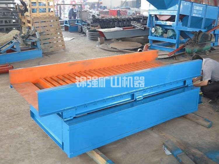 流槽底版是由天然膠做成的,橡膠墊的煽動是由電機推動減速器和煽動組織,驅使煽動架作上、下反復運動,進而橡膠墊也就作上、下健身運動,根據那樣反復運動使煤漿中的輕和重礦物質分層次,沖積物持續保持疏松情況,有益于重礦物質的收購 。煤漿歷經2800Mm長的篩分全過程,重礦物質和金粒堆積在溜格間的底端,輕礦物質從尾端持續排出來。因為在溜格上設計方案了煽動組織,進而使流槽在長期的選別全過程中一直保持穩定的篩分情況。